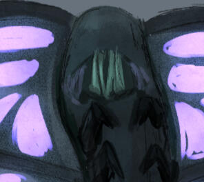 Viperworms are a worm-like entity with four Hemipteran limbs near its mouth. It's mouth stretches like a snake, and resembles a viperfish; hence its name. Along the sides of the serpent, are two butterfly-like flaps that have an appealing purple pattern along the insides. It's skin is smooth, with a skin-like texutre. Along the underbelly of the creature to it's tail are simple bio-luminescent dots. At the end of it's tail, a sharp barb with a potent venom that paralyzes. Viperworms do not have eyes however, and use heat signature to see.Viperworms lure their prey in with their vibrant colors and unique clicking noises; then they will use they will bite onto it's prey, and use its tongues to prevent it from escaping; its 'flaps' will close on its head and suffocate it while it constrains its body, it injects venom into it to paralyze it as it begins to swallow it whole and adjusting its body to fit the objects body mass. Due to the paralysis, it can safely digest the object without risk of damaging its interior.They are found in [THE PIPES], [THE GARDENS], and in [BASEMENT] levels. Most notably, they'll be found hidden in crevasses, wrapped around pipes, the ceiling, or small holes in the ground.